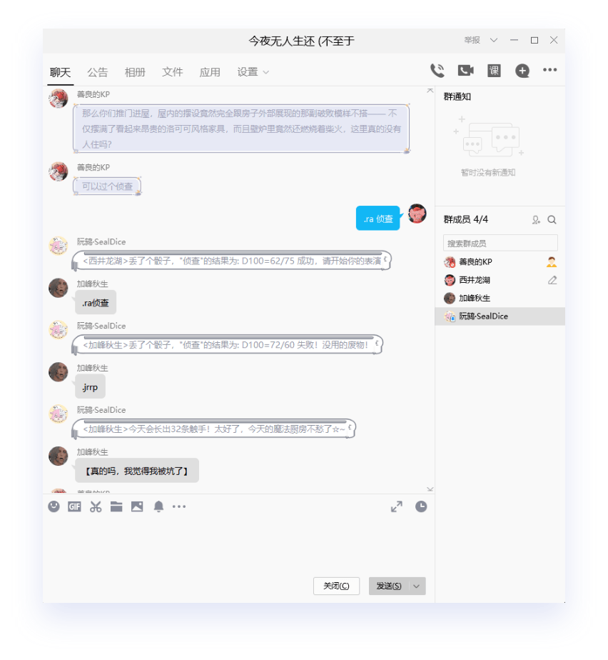 SealDice(海豹骰)是一款专为 TRPG(桌上角色扮演游戏)玩家开发的开源骰子机器人,可部署在 QQ、KOOK、Discord 等即时聊天平台,为线上跑团提供掷骰、技能检定、人物卡管理、日志记录(Log)以及自定义扩展等全套辅助功能。在国内的线上TRPG玩家中广受欢迎。